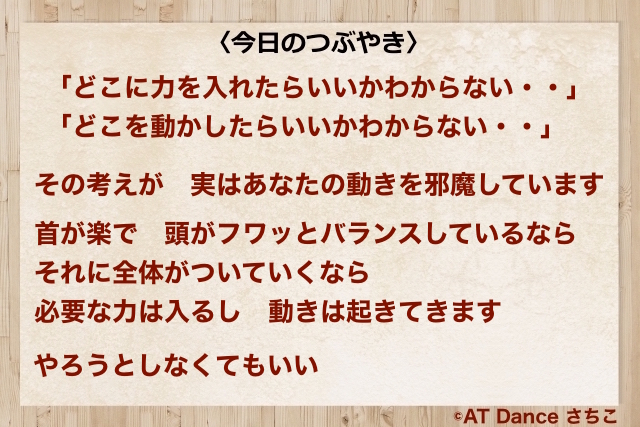 首が楽で 頭がフワッと自由でバランスしているなら それに全体がついていくなら